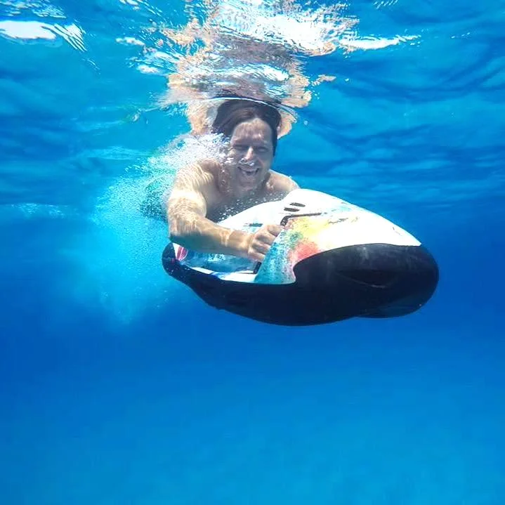 In addition to our basic package, we also offer other menus, even sushi and other Asian specialties, as well as a detox menu. On board, selected wines and cocktails can be purchased. It is important to us that our guests feel comfortable and we are happy to customise food and drinks as desired or arrange flowers to make it as perfect as possible. The Seabob is included in the package because it’s quiet often the case, that one person is a little more active, while the other person loves to relax. Our Seabob invites you to glide through the refreshing sea and explore Ibiza's underwater world – plus it’s a great work-out. Meanwhile, the other person can take a small power nap or take some amazing photos. A C-Dock will be provided to easily park the Seabob. You can also use the Seabob with the two of you. We have tried it ourselves and had a lot of fun!