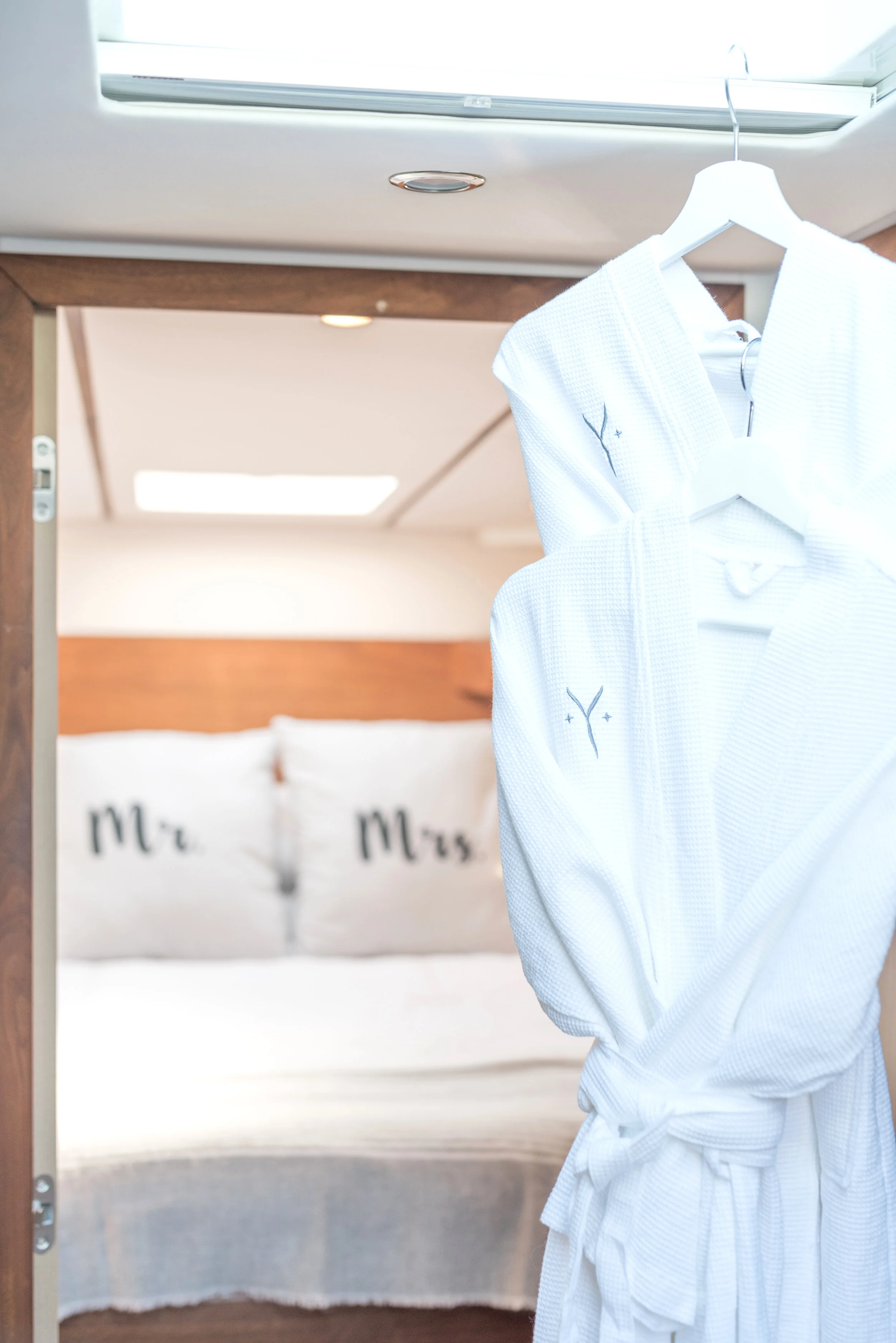 The couple meets us in our office in the Marina of Santa Eulalia and we guide them to the boat. Usually we start at 11am and return to the port around 7pm. But we are very flexible! It is of course also possible to experience a romantic sunset or to start early in the morning. "It's just about us" can be booked from April to the end of November. We also have extra warm hoodies for the colder months. Since I am also responsible for the interior design of the yachts, I have set up our boat with great attention to detail. So there is a lot to discover for all lovers of detail.